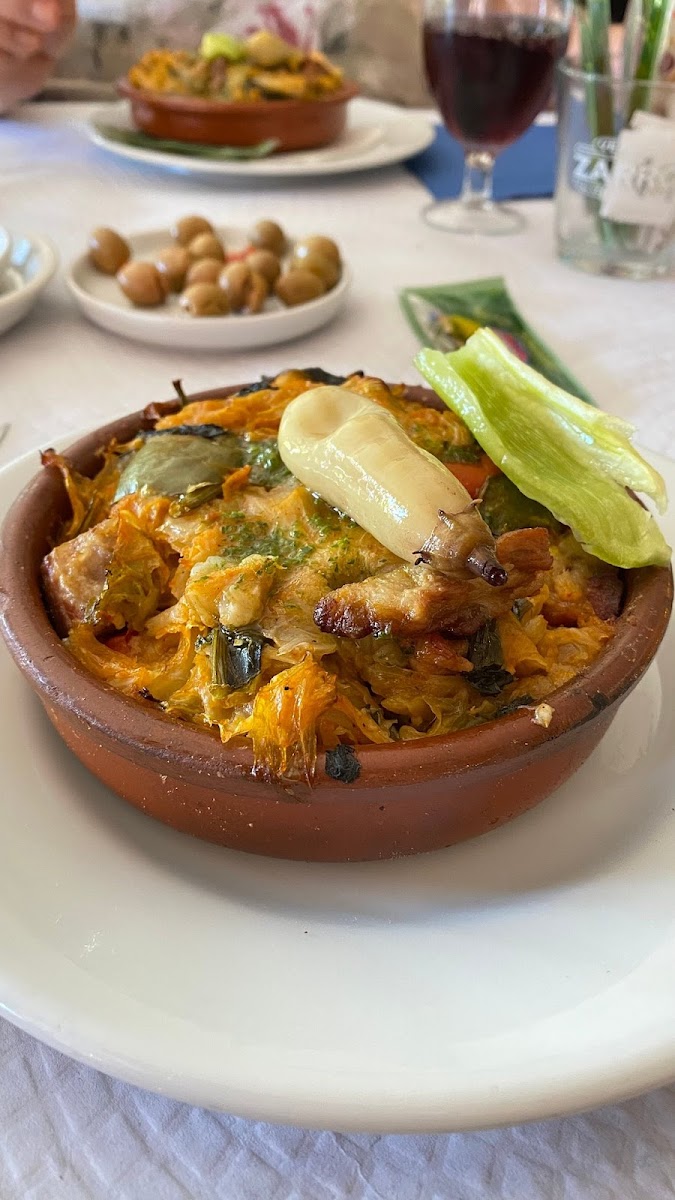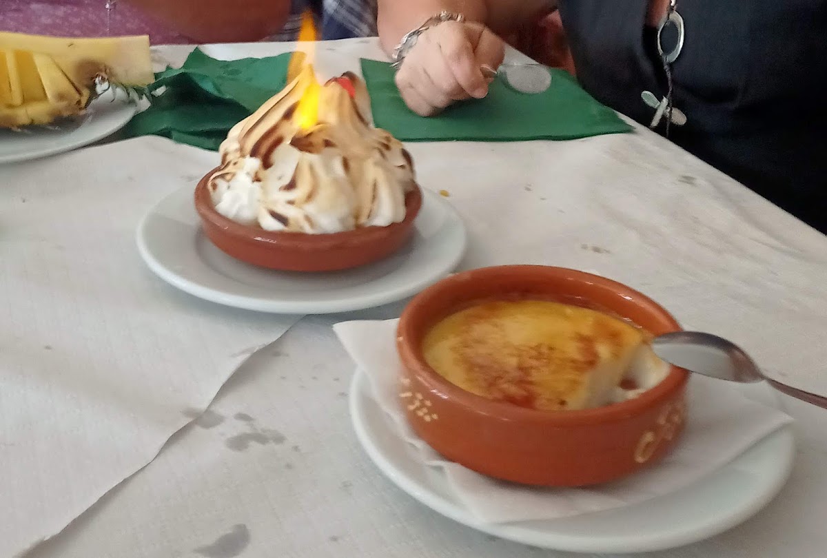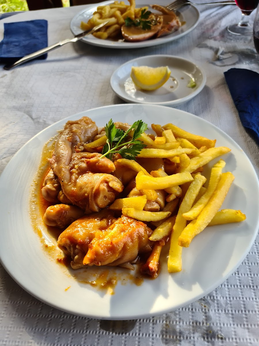 Great lunch menu with special local dishes. Big choice. Economic prices (Amuse Bouche, Olives, Water, Bottle of Wine, 1st, 2nd, amazing Desert, one even flambé for currently 15,50€) Lots of locals eat there at lunchtime. I don't know a better Lunch Menue on the island. Kid's Menue for 8€.